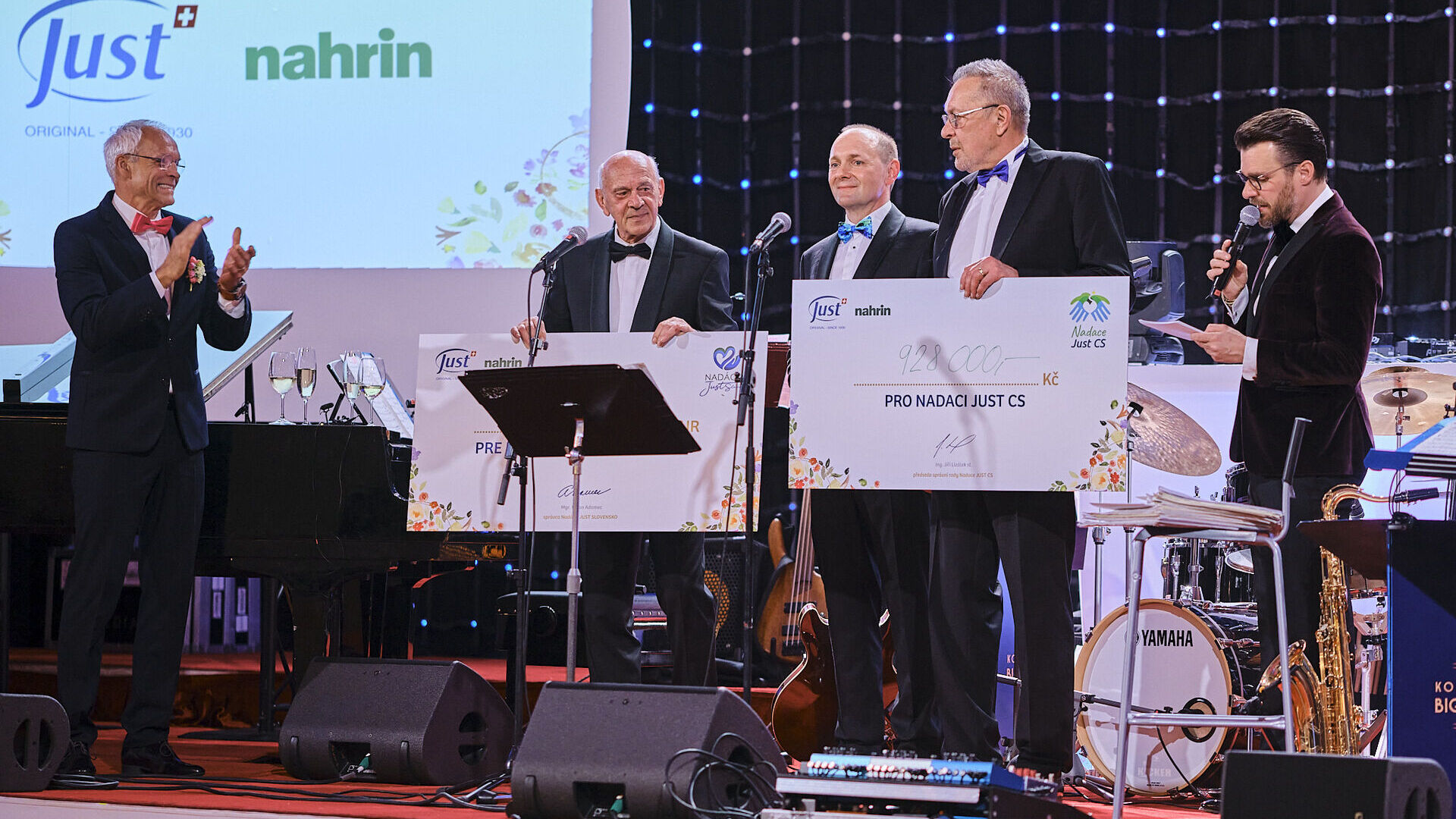 V úvodu večera převzali zástupci obou nadací výtěžky z prodeje vstupenek. Jiří Lízálek starší za Nadaci JUST CS převzal šek na 928 000 Kč. Milan Adamec za Nadaci JUST SLOVENSKO přijal šek na 12 900 eur. Těmito částkami budou obě nadace schopny podpořit žadatele o příspěvek, kteří se na ně obrací s žádostí o pomoc.